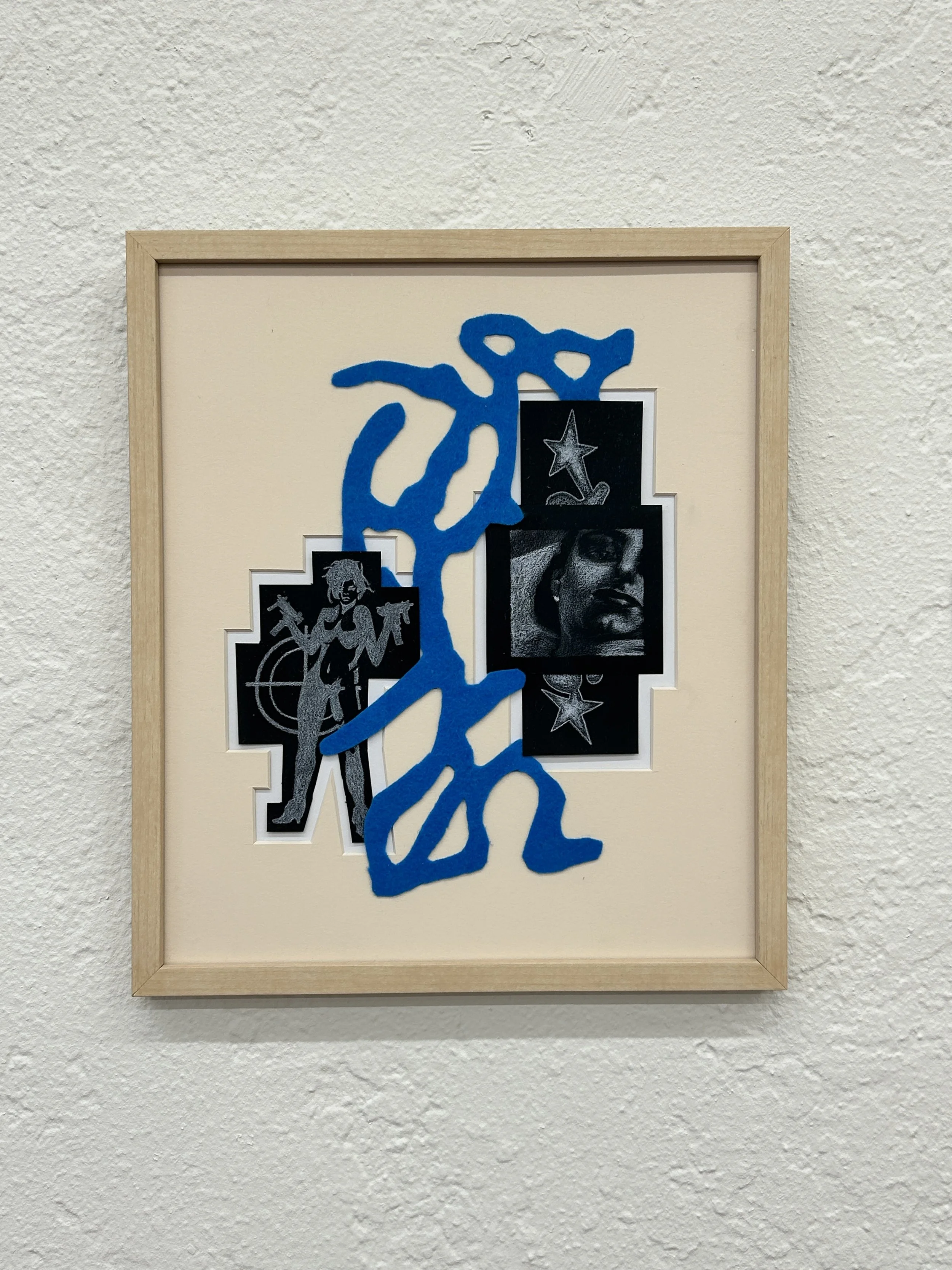 colored pencil on paper. hand cut felt pieces. custom framed.